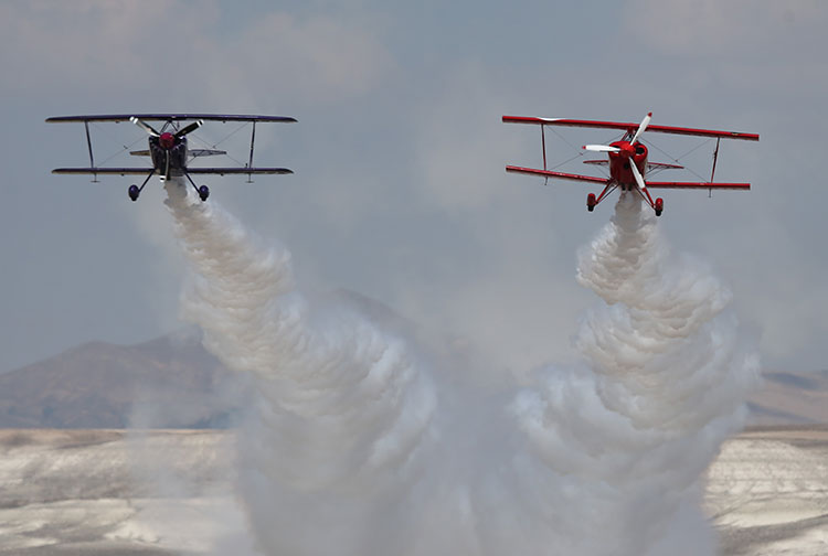 Türkiye'nin ilk profesyonel akrobasi pilotu Ali İsmet Öztürk, "Mor Menekşe" adlı uçağıyla, Türkiye'nin tek sivil kadın akrobasi pilotu kızı Semin Öztürk Şener ise kırmızı renkli "Pitts S2-B" uçağıyla birlikte gösteri uçuşu yaptı.