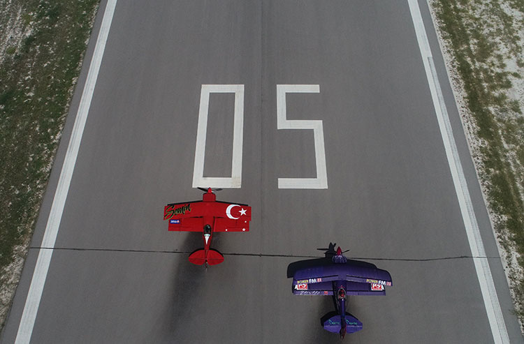 Türkiye'nin ilk profesyonel akrobasi pilotu Ali İsmet Öztürk, "Mor Menekşe" adlı uçağıyla, Türkiye'nin tek sivil kadın akrobasi pilotu kızı Semin Öztürk Şener ise kırmızı renkli "Pitts S2-B" uçağıyla birlikte gösteri uçuşu yaptı.