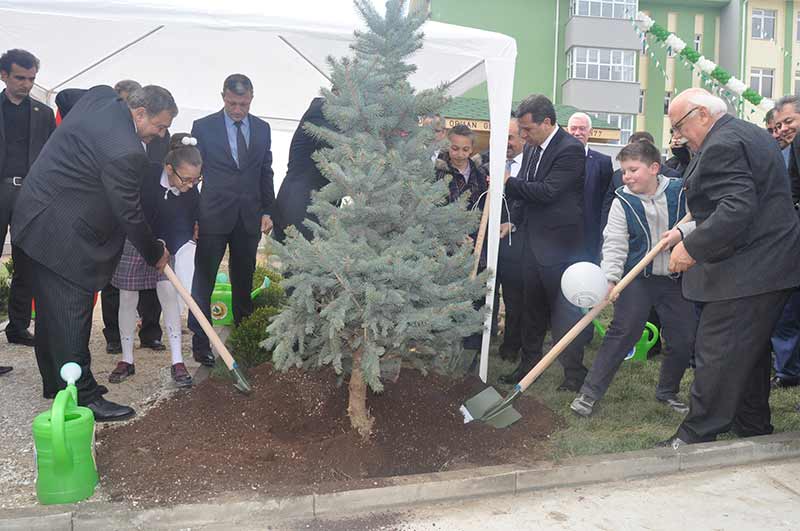 Orman ve Su İşleri Bakanı Veysel Eroğlu ile Kültür ve Turizm Bakanı Nabi Avcı, Eskişehir’e bir okul bahçesine öğrencilerle birlikte fidan dikti.