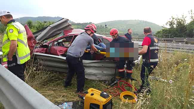 Düzde TEM otoyolunda aşırı hızlı olduğu iddia edilen otomobilin bariyerlere girmesi sonucu meydana gelen kazada 2 kişi hayatını kaybetti.