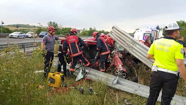 Düzde TEM otoyolunda aşırı hızlı olduğu iddia edilen otomobilin bariyerlere girmesi sonucu meydana gelen kazada 2 kişi hayatını kaybetti.