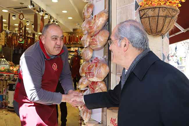 Eskişehir Büyükşehir Belediye Başkanı Yılmaz Büyükerşen kent genelinde esnaf ziyaretlerine devam ediyor. Son olarak Hamamyolu üzerinde bulunan esnafları ziyaret eden Başkan Büyükerşen, alışveriş yapan vatandaşlarla sohbet etti.