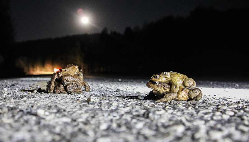 Kütahya'nın Domaniç ilçesinde her yıl ilkbahar mevsiminde çiftleşmek için gruplar halinde ormandan gölete göç eden kurbağalar, yolculuklarında birbirlerini sırtlarında taşıyor.
