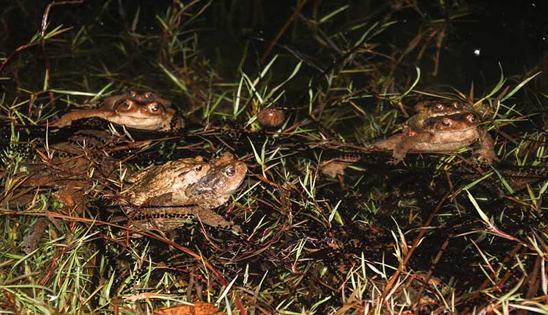 Kütahya'nın Domaniç ilçesinde her yıl ilkbahar mevsiminde çiftleşmek için gruplar halinde ormandan gölete göç eden kurbağalar, yolculuklarında birbirlerini sırtlarında taşıyor.