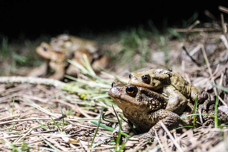 Kütahya'nın Domaniç ilçesinde her yıl ilkbahar mevsiminde çiftleşmek için gruplar halinde ormandan gölete göç eden kurbağalar, yolculuklarında birbirlerini sırtlarında taşıyor.