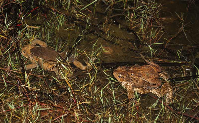 Kütahya'nın Domaniç ilçesinde her yıl ilkbahar mevsiminde çiftleşmek için gruplar halinde ormandan gölete göç eden kurbağalar, yolculuklarında birbirlerini sırtlarında taşıyor.