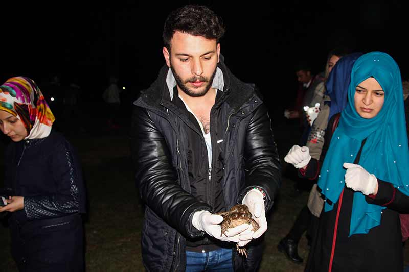 Kütahya'nın Domaniç ilçesinde her yıl ilkbahar mevsiminde çiftleşmek için gruplar halinde ormandan gölete göç eden kurbağalar, yolculuklarında birbirlerini sırtlarında taşıyor.