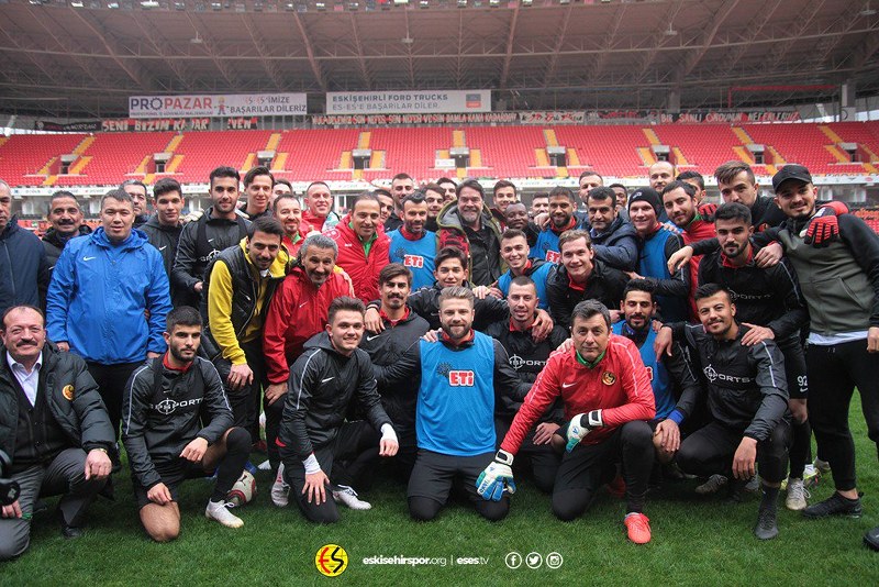 Eskişehirspor’un dünkü antrenmanda sürpriz bir misafiri vardı. Antrenmanı ziyaret eden Türkiye’nin sevilen şovmeni Beyazıt Öztürk, Siyah kırmızılı futbolcuları ziyaret etti. Beyaz futbolculara “Sahaya 7-3-0 taktiği ile çıkın. Önce gol yemeyelim beyler” diyerek taktik verdi.