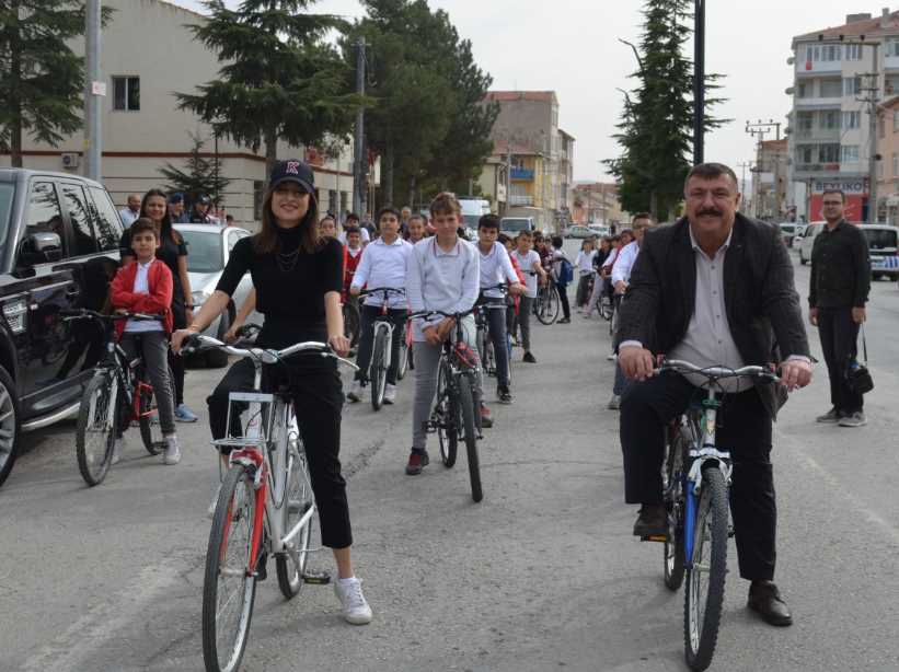 Beylikova’da Cumhuriyet'in 100. yılında düzenlenen etkinlikler kapsamında Beylikova Kaymakamı Kübra Eroğlu, Belediye Başkanı Özkan ALP ve öğrencilerin katılımıyla bisiklet turu yapıldı.