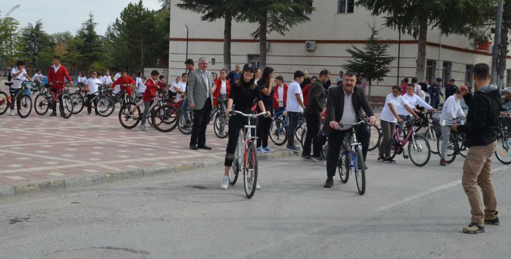 Beylikova’da Cumhuriyet'in 100. yılında düzenlenen etkinlikler kapsamında Beylikova Kaymakamı Kübra Eroğlu, Belediye Başkanı Özkan ALP ve öğrencilerin katılımıyla bisiklet turu yapıldı.