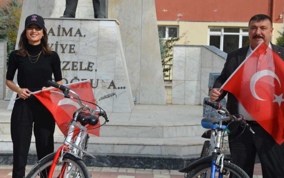 Beylikova’da Cumhuriyet'in 100. yılında düzenlenen etkinlikler kapsamında Beylikova Kaymakamı Kübra Eroğlu, Belediye Başkanı Özkan ALP ve öğrencilerin katılımıyla bisiklet turu yapıldı.