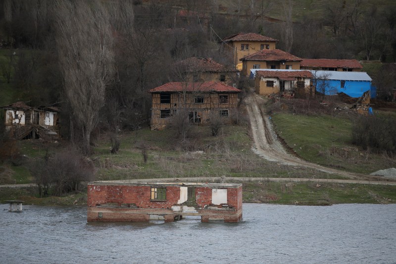 Bilecik'in Pazaryeri ilçesinde 2006 yılında baraj kurulmasının ardından büyük bölümü sular altında kalan Günyurdu köyünde, son yağışların da etkisiyle su seviyesi yükseldi.