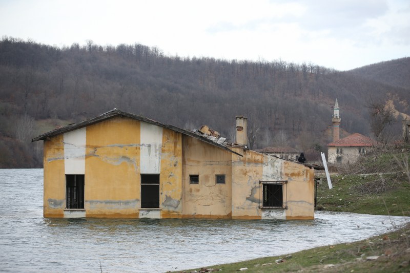 Bilecik'in Pazaryeri ilçesinde 2006 yılında baraj kurulmasının ardından büyük bölümü sular altında kalan Günyurdu köyünde, son yağışların da etkisiyle su seviyesi yükseldi.