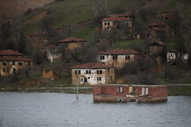 Bilecik'in Pazaryeri ilçesinde 2006 yılında baraj kurulmasının ardından büyük bölümü sular altında kalan Günyurdu köyünde, son yağışların da etkisiyle su seviyesi yükseldi.