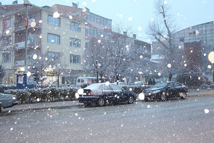 Bilecik'in Pazaryeri ilçesinde başlayan kar yağışı ilçeyi beyaza bürüdü.