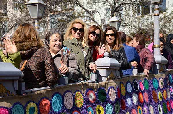 Eskişehirli kadınlar bir araya gelerek, ördükleri bin 500 motifle Adalar mevkiinde bir köprüyü süslediler.