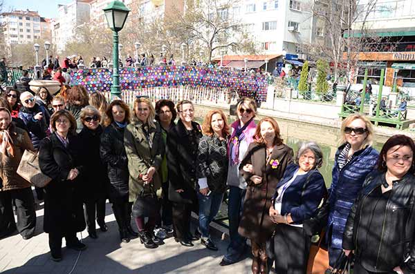 Eskişehirli kadınlar bir araya gelerek, ördükleri bin 500 motifle Adalar mevkiinde bir köprüyü süslediler.