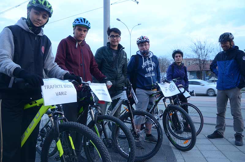 ’Trafikte biz de varız’ demek için bisikletliler, bütün dünyada eş zamanlı düzenlenen etkinliği Eskişehir’e taşıdı.