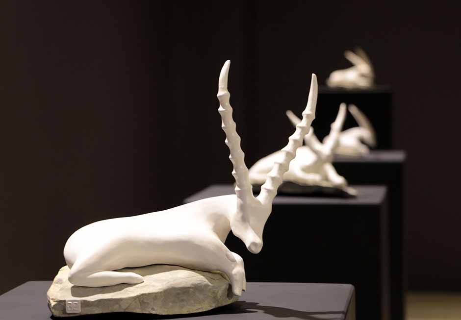 Seramik sanatçısı Ayşe Ergüner, bazı hayvanların boynuzu ve dişleri için avlanmasına tepkisini göstermek için fil, geyik, keçi ve gergedan başta olmak üzere boynuzlu hayvanların seramik heykellerini yapıyor.