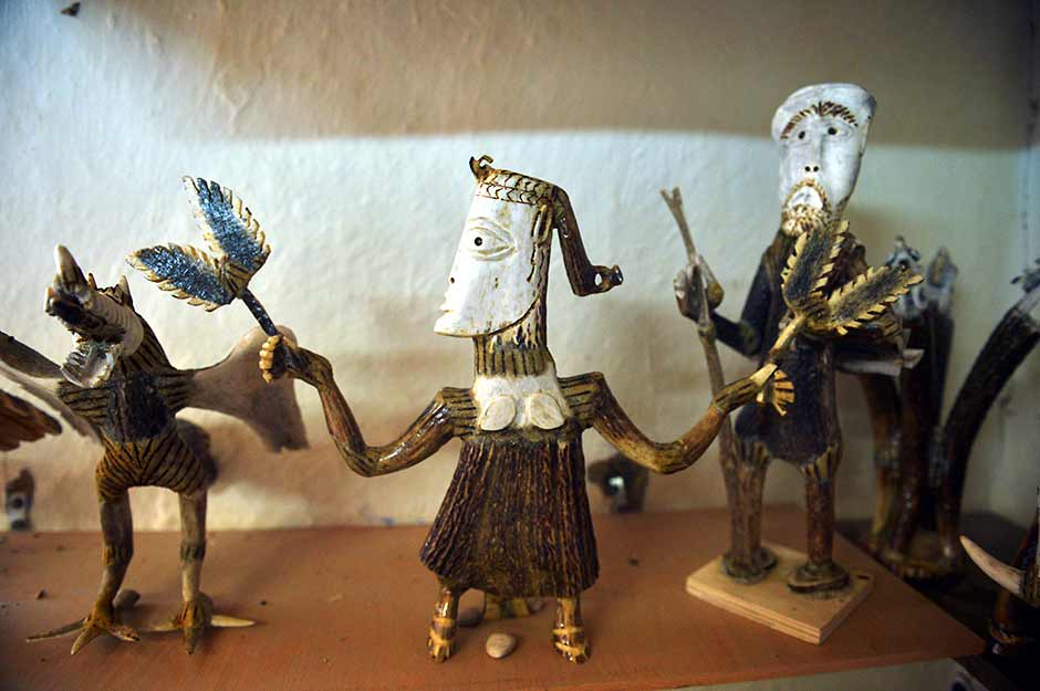 Eskişehir'in Mihalıççık ilçesi Ilıcalar Mahallesi Muhtarı Yurttaş Ayaş, 1999 yılından beri geyik boynuzundan kartal, yılan, ejderha gibi birçok figürün heykelini yapıyor.