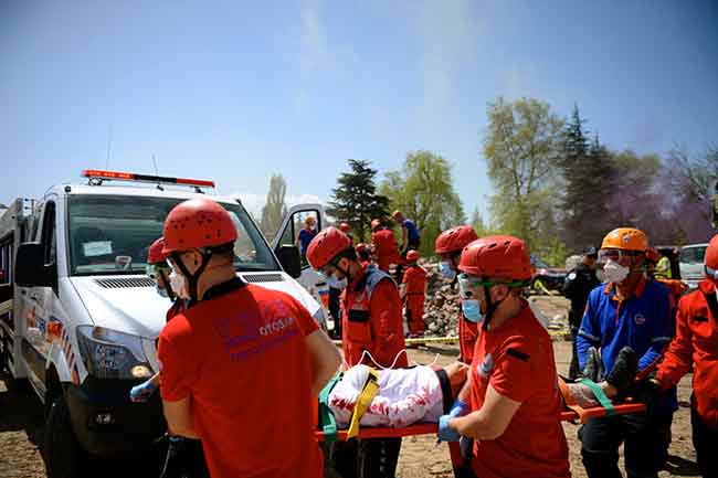 Senaryo gereği Tepebaşı ilçesi Emirceoğlu Mahallesi'nde meydana gelen 5,5 büyüklüğündeki depremin ardından yaşananlar ve kurtarma ekiplerinin çalışmaları sergilendi.