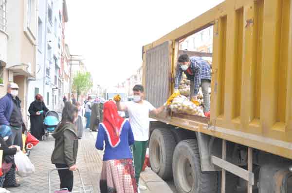Eskişehir’in Şirintepe Mahallesi’nde vatandaşlara 8 ton patates, 2 ton soğan dağıtıldı. (Haber: Meltem Karakaş Kaya)