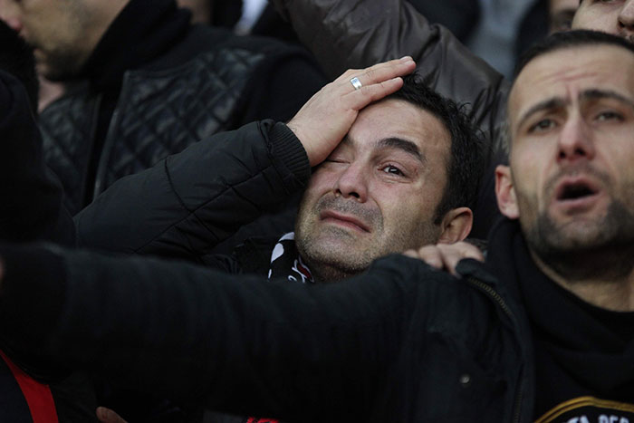 TFF 1. Lig'in 13. haftasında oynanan Eskişehirspor-Çaykur Rizespor mücadelesi 1-1 beraberlikle tamamlandı. Maçın ardından futbolcuları tribüne çağıran Eskişehirspor taraftarı, verilen mücadele için oyuncuları alkışlarken, zor günler geçiren takım için bir olan futbolcu ve taraftarların gözyaşları objektiflere yansıdı.