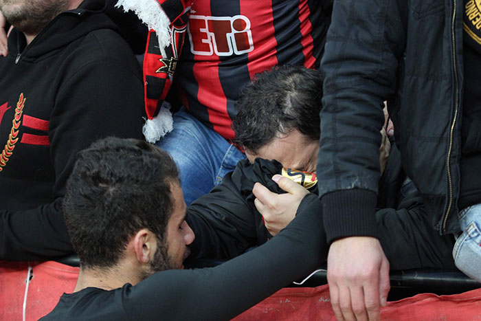 TFF 1. Lig'in 13. haftasında oynanan Eskişehirspor-Çaykur Rizespor mücadelesi 1-1 beraberlikle tamamlandı. Maçın ardından futbolcuları tribüne çağıran Eskişehirspor taraftarı, verilen mücadele için oyuncuları alkışlarken, zor günler geçiren takım için bir olan futbolcu ve taraftarların gözyaşları objektiflere yansıdı.