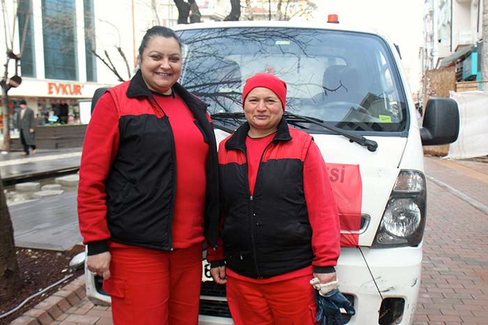 Eskişehir merkez Odunpazarı Belediyesi Temizlik İşleri Müdürlüğünde 2 kadından oluşan çöp toplama ekibi, erkeklere taş çıkartan çalışma azimleriyle dikkati çekiyor.