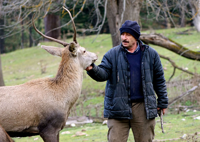 Eskişehir'in Mihalıççık ilçesindeki Doğa Koruma ve Milli Parklar Genel Müdürlüğüne ait Çatacık Kızıl Geyik Üretme ve Gen İstasyonunda görevli Zekeriya Soğuk, geyiklerle kurduğu yakın iletişimle görenlerin ilgisini çekiyor.