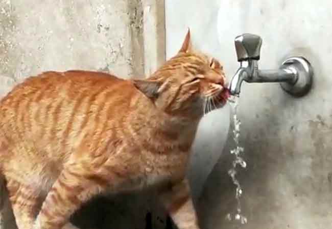 Bu kedi çeşmeden başka hiçbir yerden su içmiyor