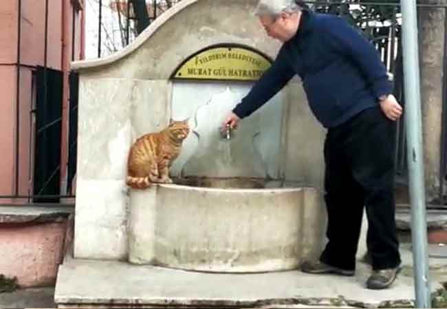 Bu kedi çeşmeden başka hiçbir yerden su içmiyor