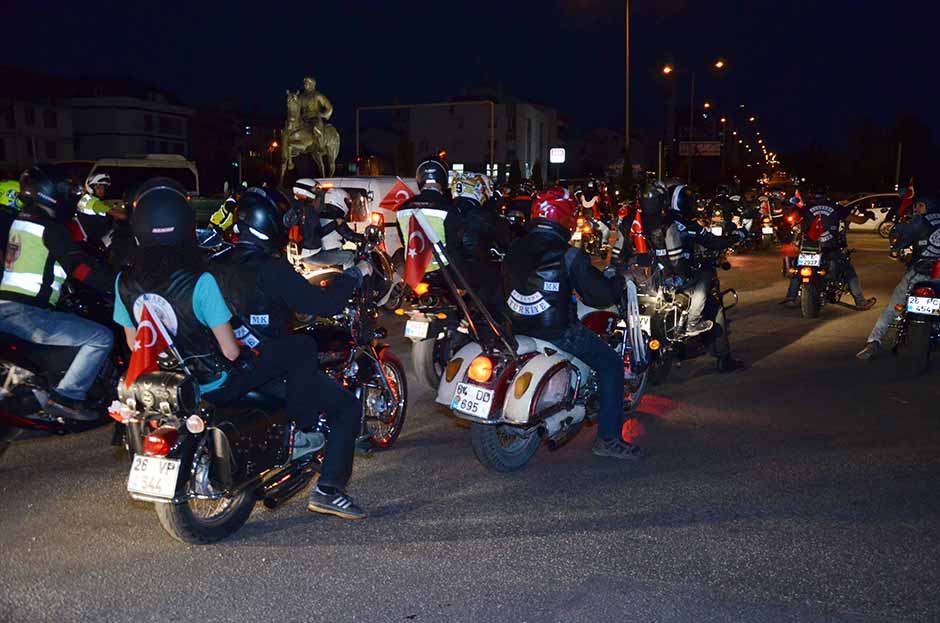 Eskişehir’de bir araya gelen aralarında çeşitli motosiklet, otomobil ve bisiklet gruplarının olduğu topluluk, 30 Ağustos Zafer Bayramı için direksiyon başına geçti.