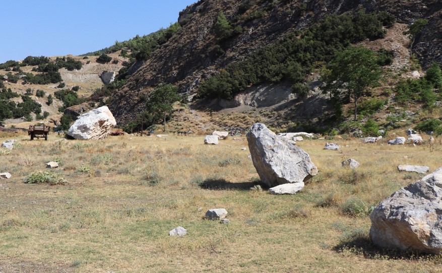 Denizli’nin Honaz ilçesinde 2016’dan bu yana faaliyette olan taş ocağından mahalleye düşen taş ve kaya parçaları, vatandaşları korkutmaya devam ediyor. Patlamaların ardından çevreye saçılan kaya parçaları, futbol sahasını kullanılamaz hale getirdi.