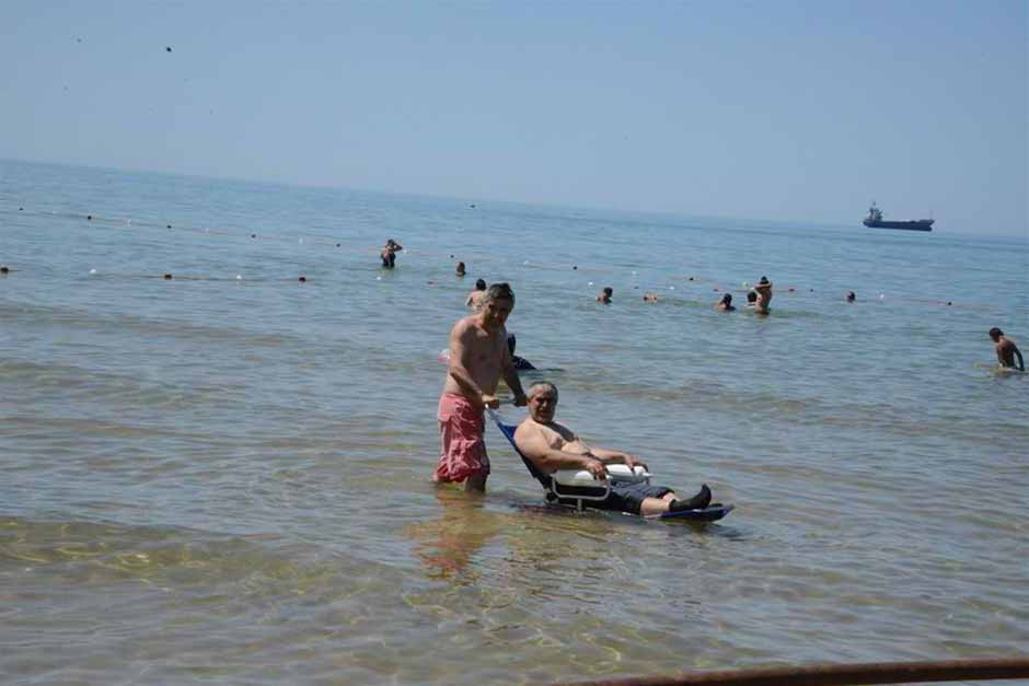 Sakatlar Derneği ”Engellileri Denizle Buluşturma” projesi kapsamında, bedensel engelli vatandaşlar, kendilerine eşlik eden yakınlarıyla birlikte tatil yaparak denizde yüzmenin keyfini yaşadı.