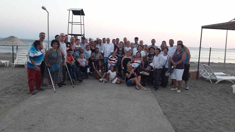 Sakatlar Derneği ”Engellileri Denizle Buluşturma” projesi kapsamında, bedensel engelli vatandaşlar, kendilerine eşlik eden yakınlarıyla birlikte tatil yaparak denizde yüzmenin keyfini yaşadı.