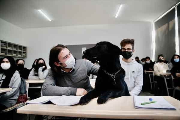 Eskişehir Anadolu Lisesinde sahiplenilen 3 köpek ve bir kedi, okulun maskotu haline geldi.