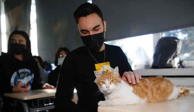 Eskişehir Anadolu Lisesinde sahiplenilen 3 köpek ve bir kedi, okulun maskotu haline geldi.