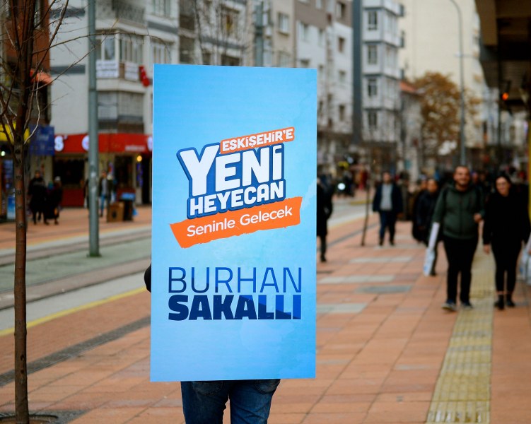 Cumhur İttifakı'nın Eskişehir Büyükşehir Belediye Başkan adayı AK Parti'li Burhan Sakallı gönüllü gençlerin ürettiği "yürüyen billboard" projesini hayata geçirdi. Proje ulusal medyada da ilgi çekti.