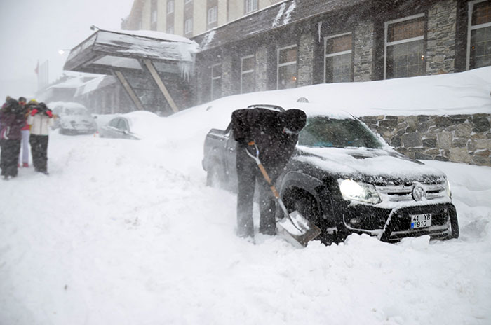 Şiddetli yağan kar nedeniyle araçlar mahsur kaldı. Dağ köylerine ulaşım sağlanamıyor