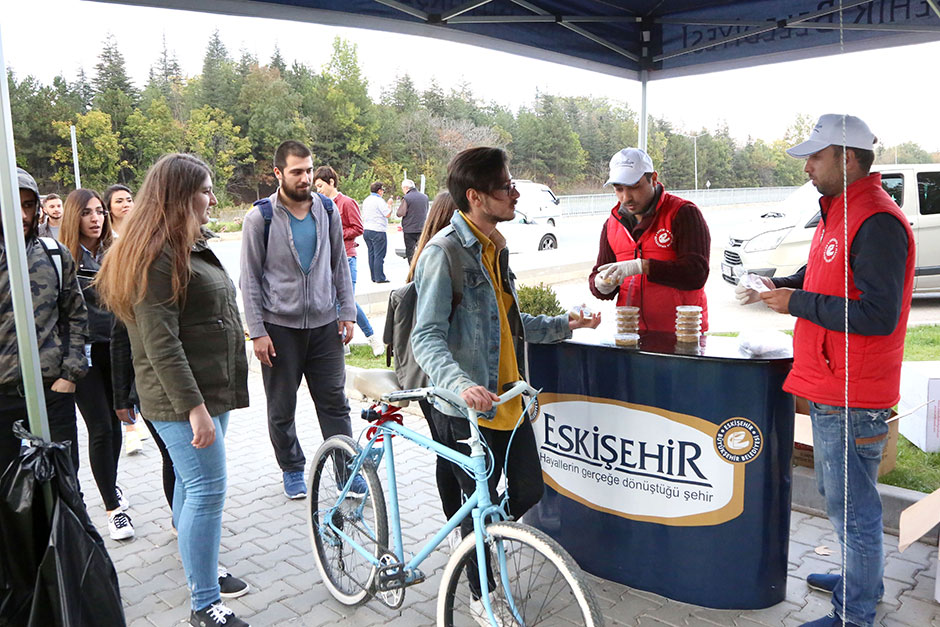 Sosyal medya üzerinden öğrencilerden gelen istek üzerine Belediye Sosyal Hizmetler Dairesi Başkanlığı, Anadolu Üniversitesi ve Eskişehir Osmangazi Üniversitesi girişlerinde öğrencilere aşure ikram etti.