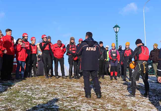 Eskişehir'de, İl Afet ve Acil Durum Müdürlüğü (AFAD) tarafından, akarsu, göl ve barajlarda oluşan buzun üzerinde yürümenin güvenli olmadığı konusunda farkındalık oluşturmak ve buz kazalarının önlenmesi amacıyla tatbikat gerçekleştirildi.