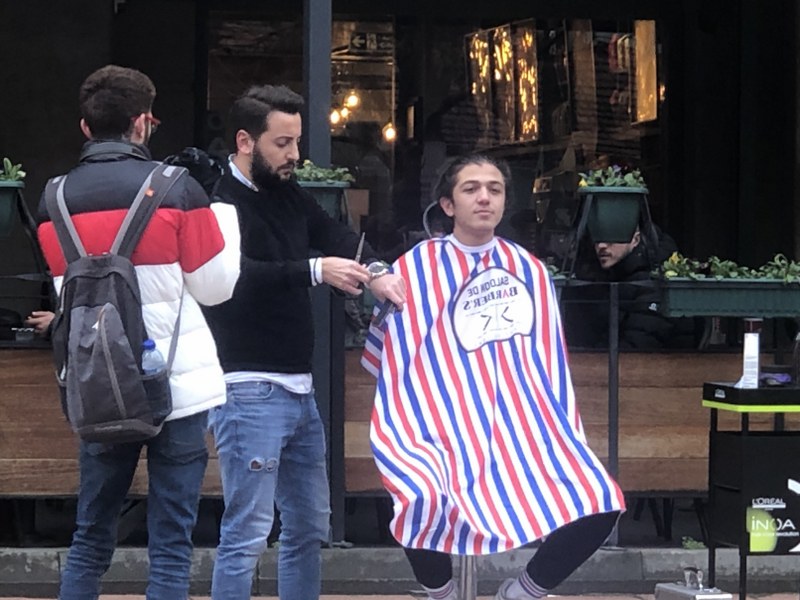 Eskişehir’de bir öğrenci, cadde ortasında tıraş oldu. Caddeden geçen kalabalığa aldırış etmeden tıraşını olan gencin görüntüleri vatandaşlar tarafından kaydedildi.