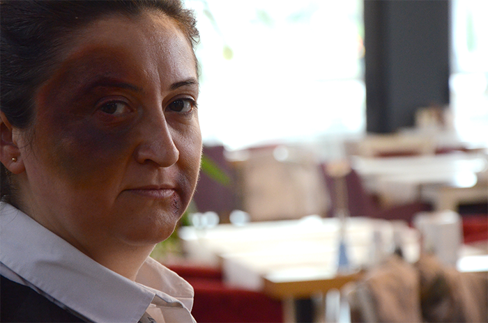 Ayten Usta Gurme Restaurant çalışanları, 8 Mart Dünya Kadınlar Günü nedeniyle yüzlerine yaptırdıkları makyajlar ile kadına şiddete dikkat çekti.