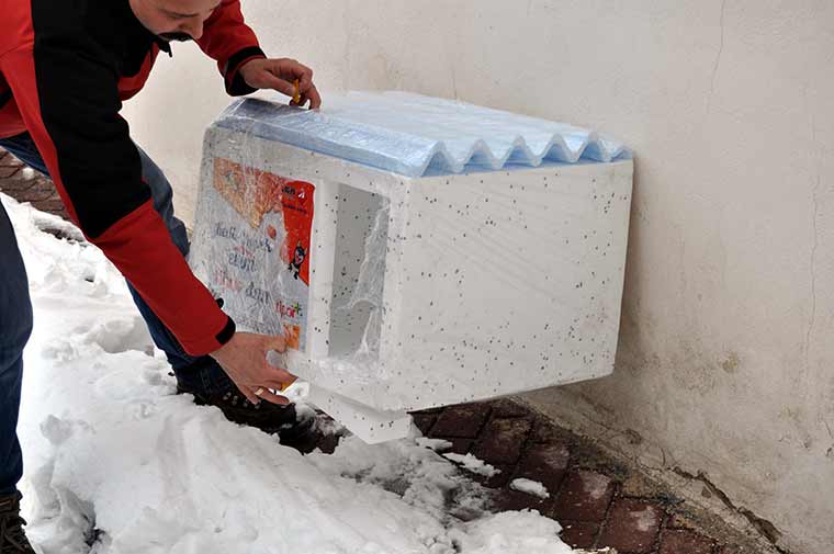 Eskişehir'de, sosyal medya aracılığıyla bir araya gelen Düş Bahçesi Çocukları Topluluğu üyeleri, kış mevsiminde sokak kedilerinin barınması amacıyla kentte belirlediklere alanlara "kedi evleri" yerleştiriyor.