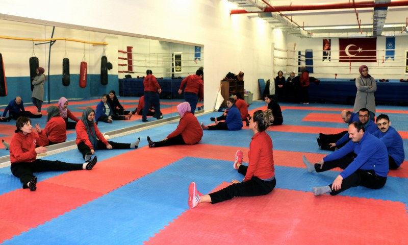 Eskişehir'de başlatılan "Mutlu Çarşamba Projesi" ile her hafta çarşamba günleri spor salonuna gelen engelliler, uzman antrenörler eşliğinde spor yapıyor