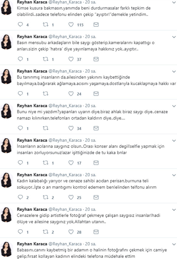 Hakan Altun’un babası Hasan Altun'un son yolculuğuna uğurlandığı cenaze töreninde yaşanan duruma müdahale eden şarkıcı Reyhan Karaca, o anların hikayesini sosyal medya hesabından takipçileriyle paylaştı.