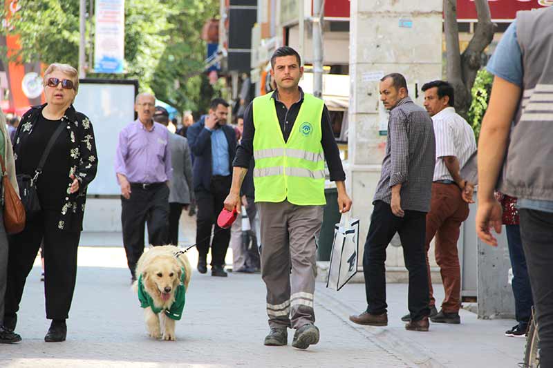 Eskişehir’de barınaktan alınan ve aldığı eğitim sonrasında sokaktan çöp toplamaya başlayan 4,5 yaşındaki Golden cinsi çevreci köpek, görenleri kendisine hayran bırakıyor.
