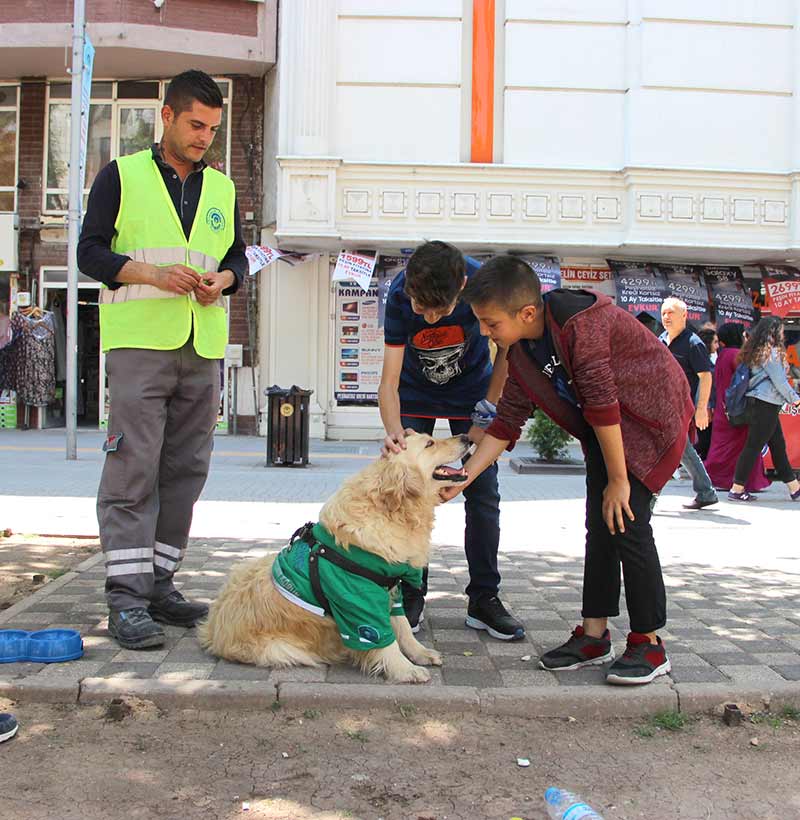 Eskişehir’de barınaktan alınan ve aldığı eğitim sonrasında sokaktan çöp toplamaya başlayan 4,5 yaşındaki Golden cinsi çevreci köpek, görenleri kendisine hayran bırakıyor.