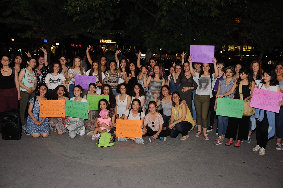 Eskişehir Demokratik Kadın Platformu (EDKP) üyeleri, eşini öldürdüğü gerekçesiyle tutuklanan Çilem Doğan’ın beraatini meşale yakıp kutladı.